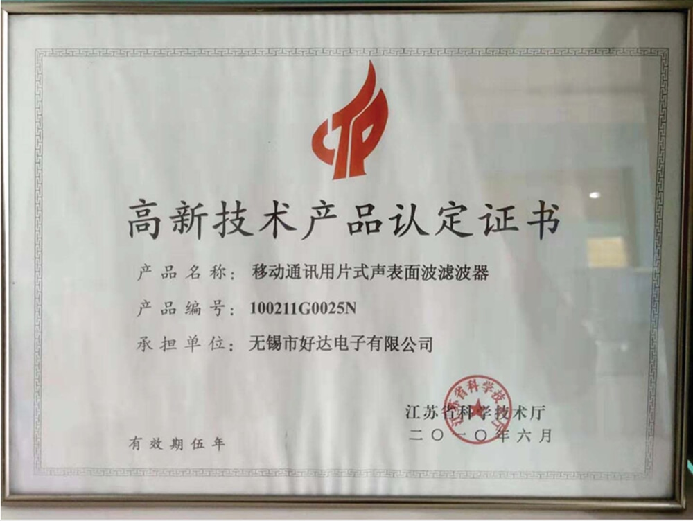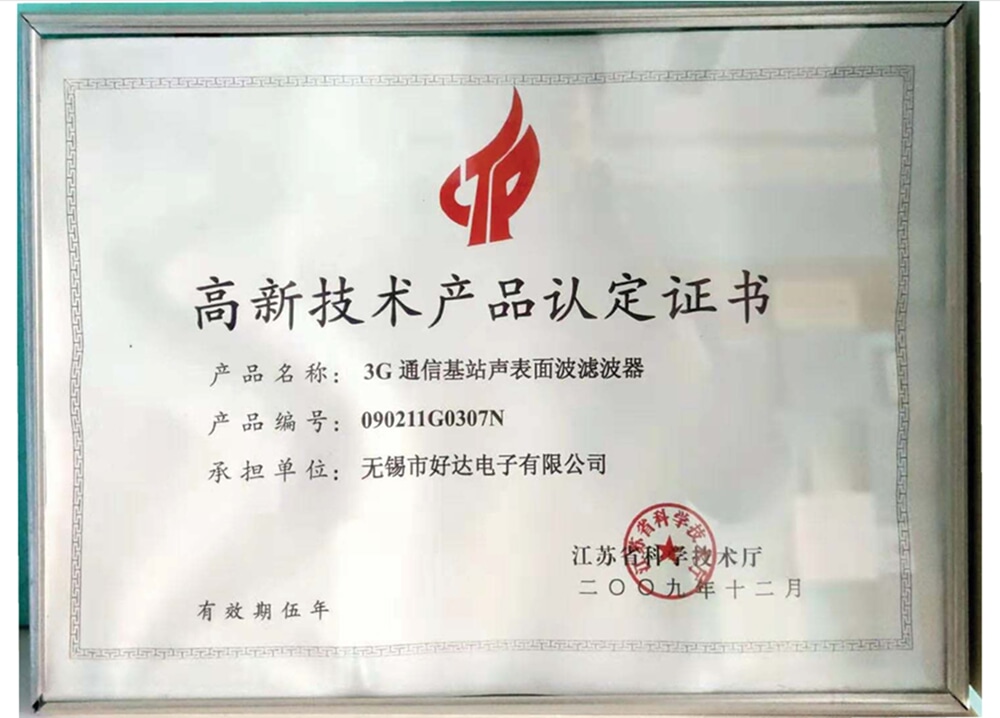 高新技術產(chǎn)品認定3G通信基站聲表面波濾波器